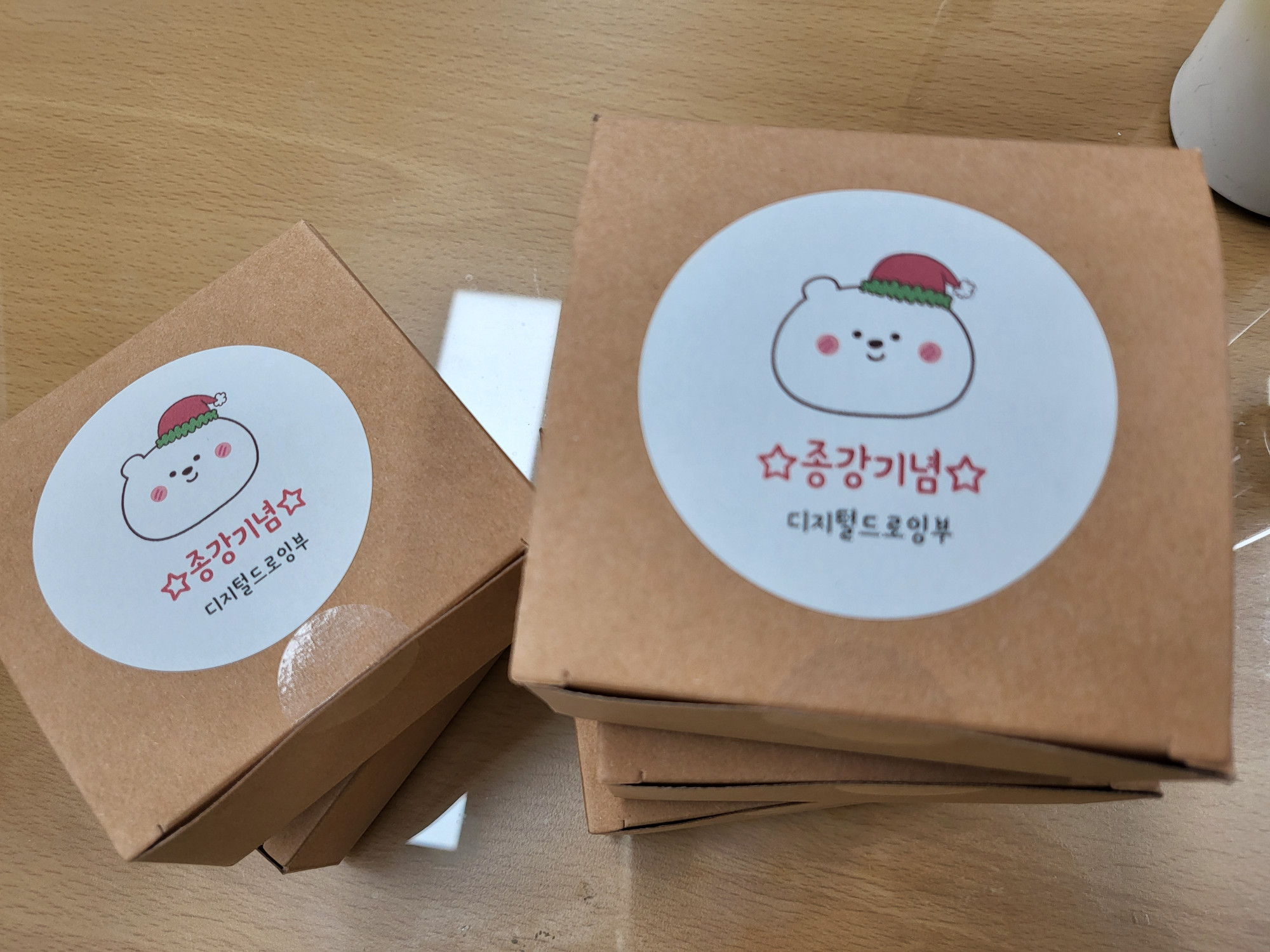 실링 스티커도 되어있고요. 아이들이 좋아합니다. 부피도 슬림하고요. 동아리 종강기념으로 멘트를 바꾸고 '별'을 넣었는데 예쁩니다.