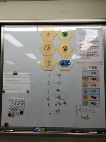 교실 칠판, 어떻게 꾸미고 계세요? 1. 씽킹보드 : 날짜와 요일을 알려줄 때, 아이들에게 스스로 쓰게 하면서 역할을 주고 있어요. 쉽게 썼다 지웠다 할 수 있다는 장점이 있습니다. 2. 숫자 자석 홀더 : 아이들이 활동지를 제출할 때, 자기 번호가 적힌 숫자 자석을 활용하면 편리하게 할 수 있어요. 3. 영어 화이트 보드 : 오늘의 영어 단어를 적어 놓으...