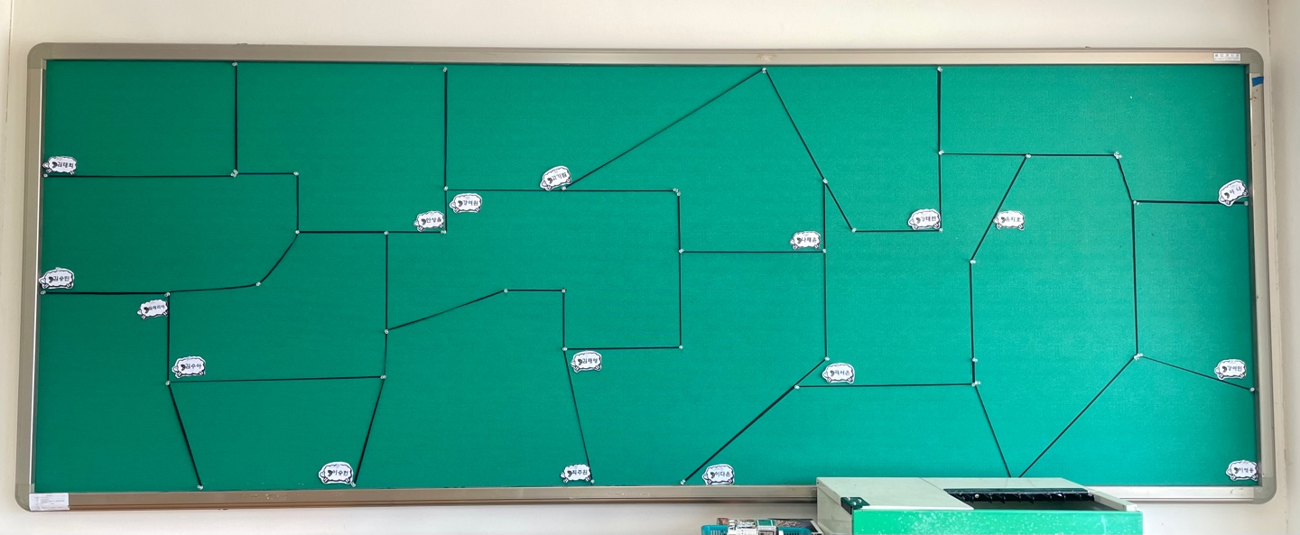 아이들이 1학기 동안 했던 작품들 중 마음에 드는 것들을 자기가 고른 땅(?)에 자유롭게 배치했구요