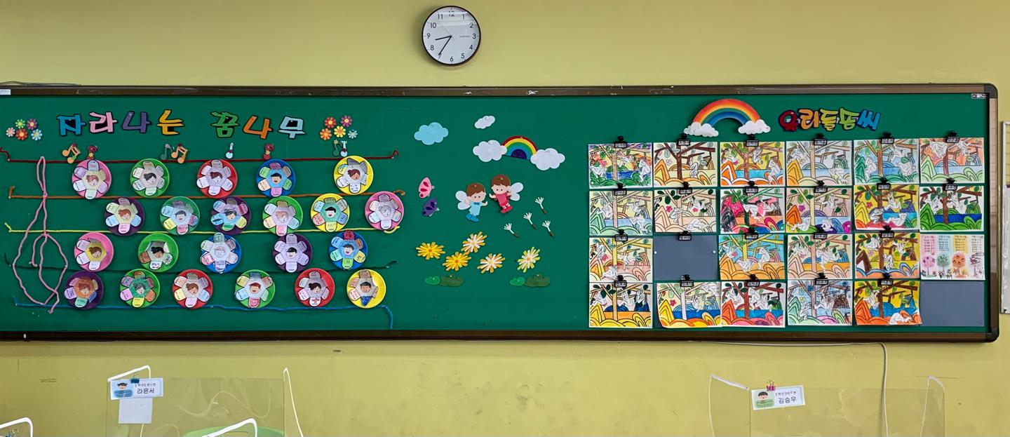 아이들은 다양한 색깔과 모양으로 뇌를 자극하고, 아름다움을 느낄 수 있도록 알록 달록한 환경이 필요하다는 것이 제 교육 철학 입니다. 색의 조화를 늘 고려하는 제 취향이 반영된 게시판은 계절에 맞게 변화를 주고 있는데요. 아이스크림몰에서 구매한 '자라나는 꿈나무' 부직포는 벌써 10년 째 쓰고 있나 봅니다^^ 압정 집게 이름표로 작품을 게시하고, 계절에 맞...