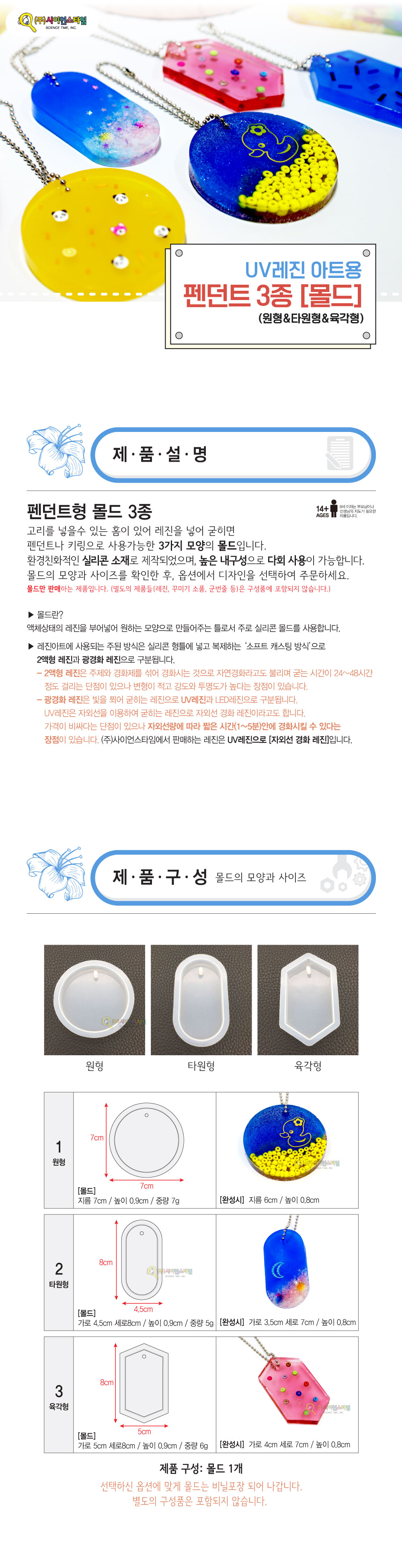 | 품명 및 모델명 | [UV레진 아트용] 펜던트3종 몰드 (원형,타원형,육각형 택1) |