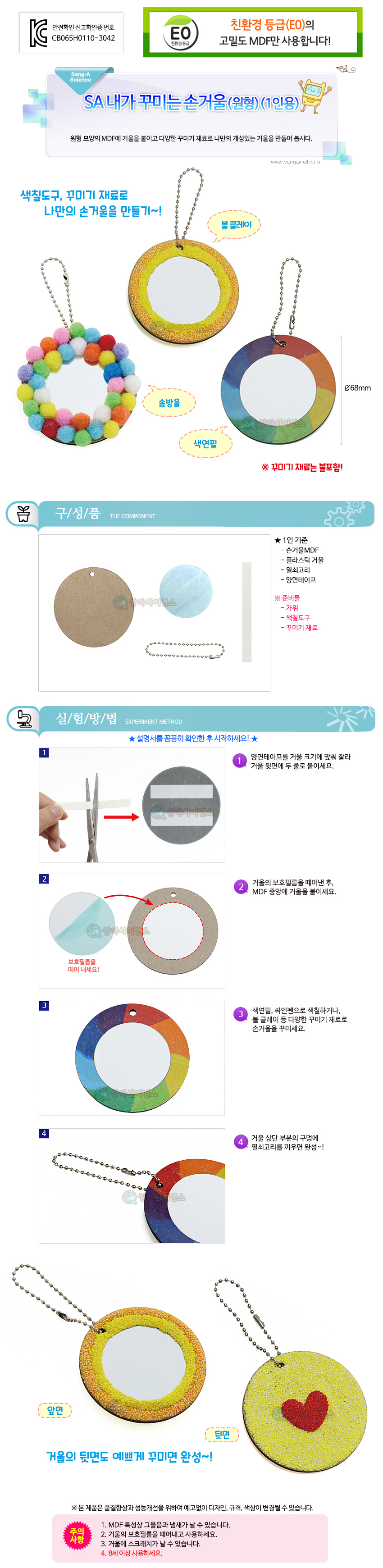 | 품명 및 모델명 | [상아사이언스] SA 내가 꾸미는 손거울(1인, 규격 선택) |