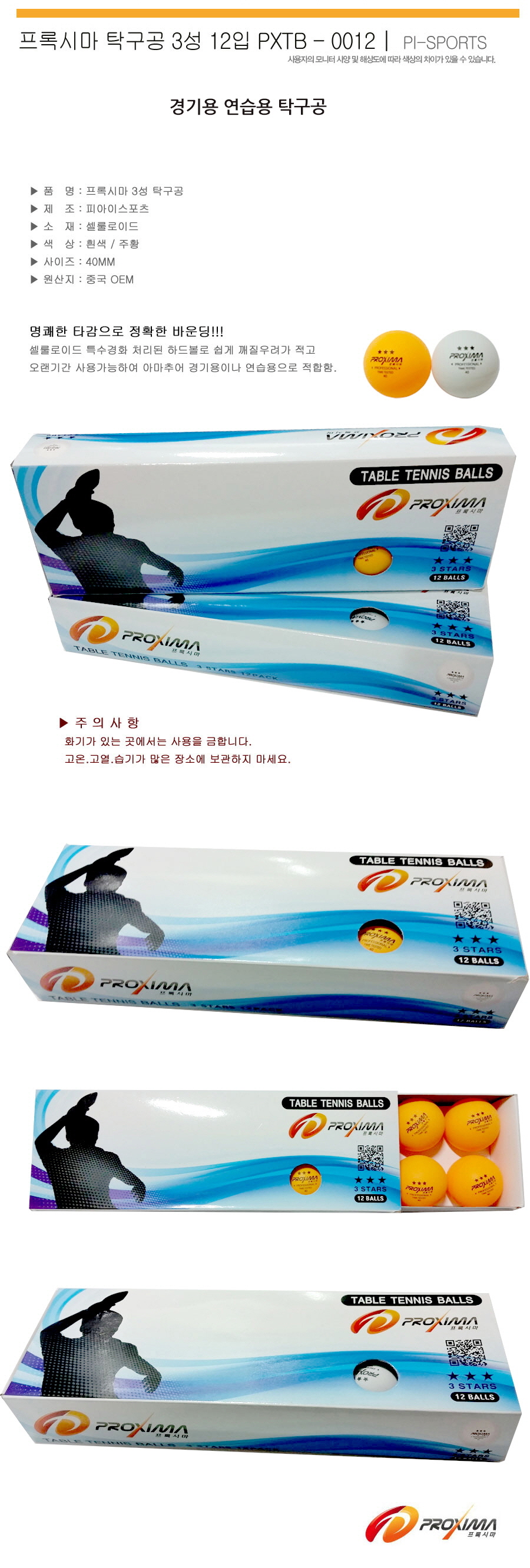 | 품명 및 모델명 | [프록시마] 아마추어 경기용 연습용 3성 탁구공 12개입 |