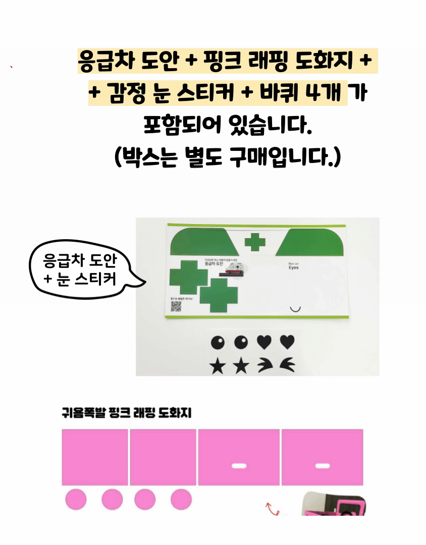 응급차 세트 (핑크래핑 도화지 + 감정눈 + 응급차 도안 + 바퀴)
