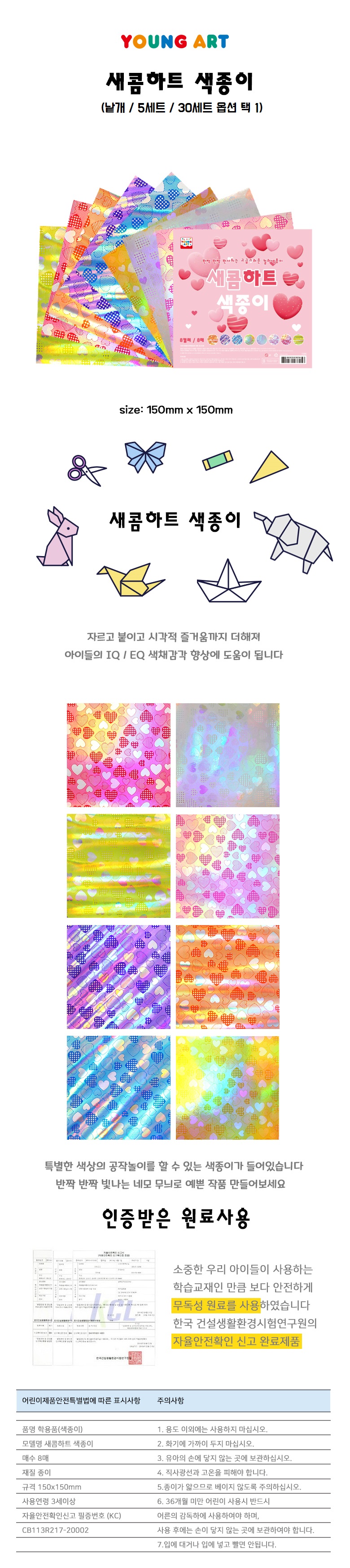 | 품명 및 모델명 | 영아트 새콤하트 색종이 8색 8매 |
