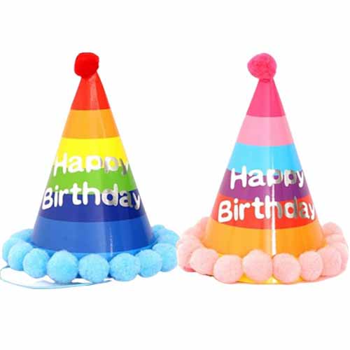 • [비품닷컴] 무지개 솜방울 고깔모자 2종 생일파티 행사 상품번호 : 1022446