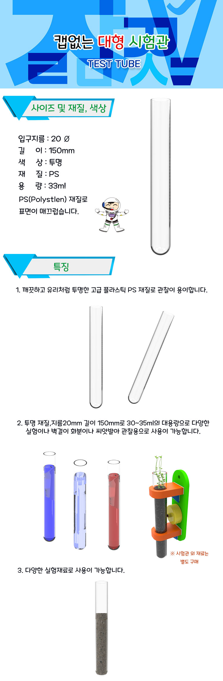 | 품명 및 모델명 | [자람사이언스] 캡없는 대형 시험관(1개/10개) |