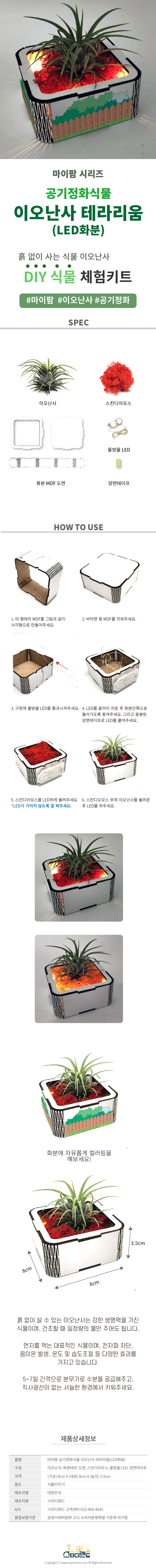 | 재질 (섬유의 경우 혼용률) | MDF, 흙, 식물 |