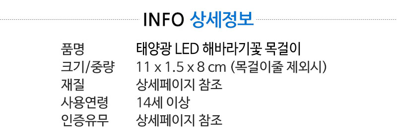 | 품명 및 모델명 | [자람사이언스] 태양광 LED 해바라기꽃 목걸이 |