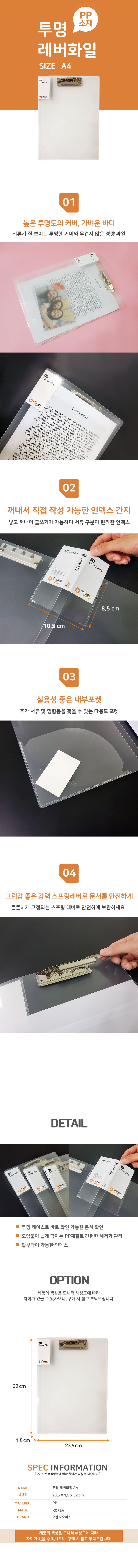 | 품명 및 모델명 | A4 투명 레버화일 |