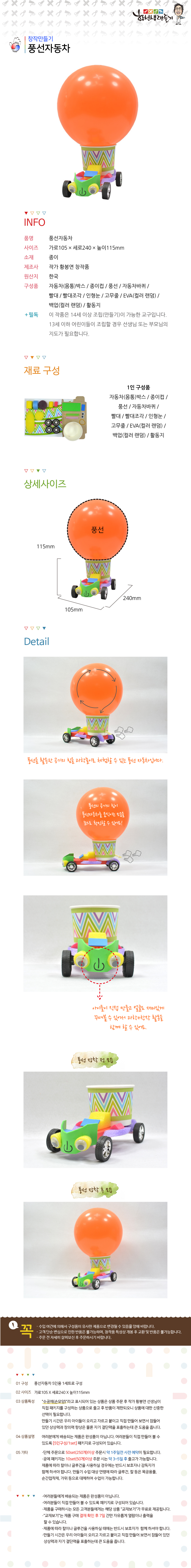| 품명 및 모델명 | [황선생] 풍선자동차 만들기Set(5인용) |