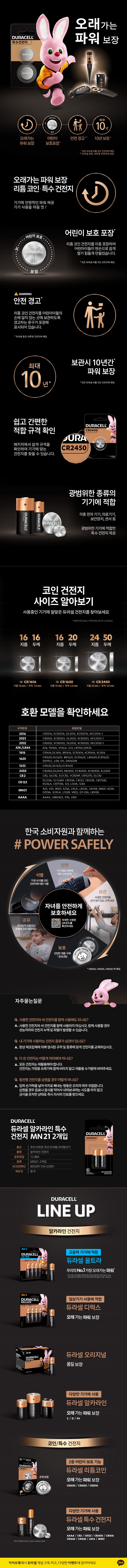 | 품명 및 모델명 | [듀라셀] 알카라인 12V 건전지 MN21 23A 2개입 |