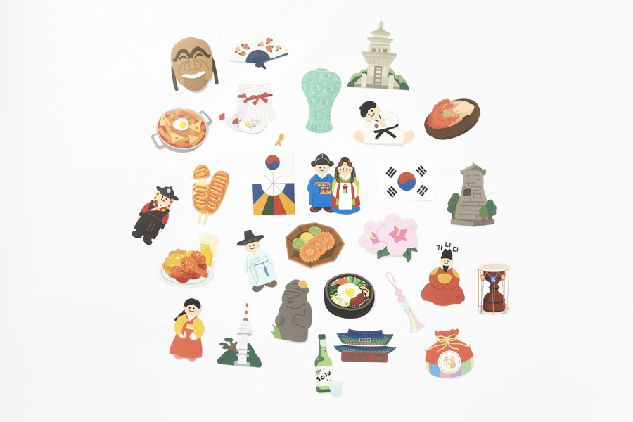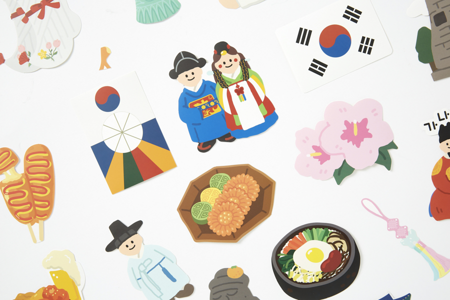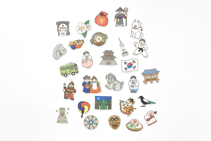 우리나라를 생각하면 떠오르는 다양한 이미지들을 일러스트로 표현한 스티커팩입니다