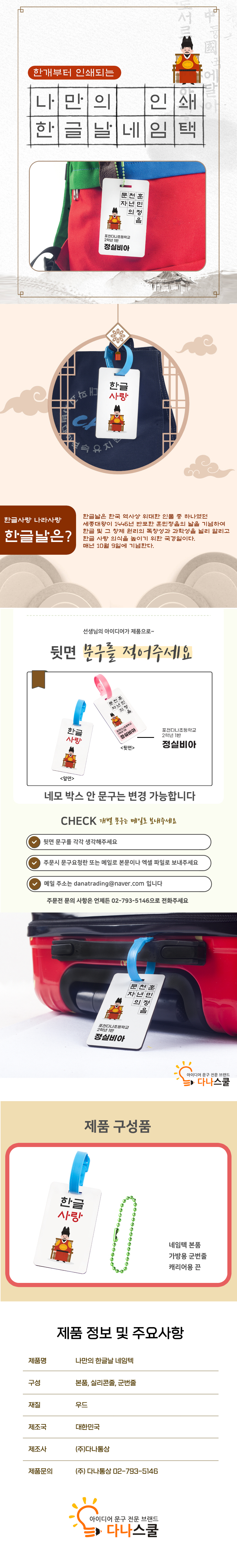 | 품명 및 모델명 | 다나스쿨 나만의 인쇄 한글사랑 한글날 네임택 |