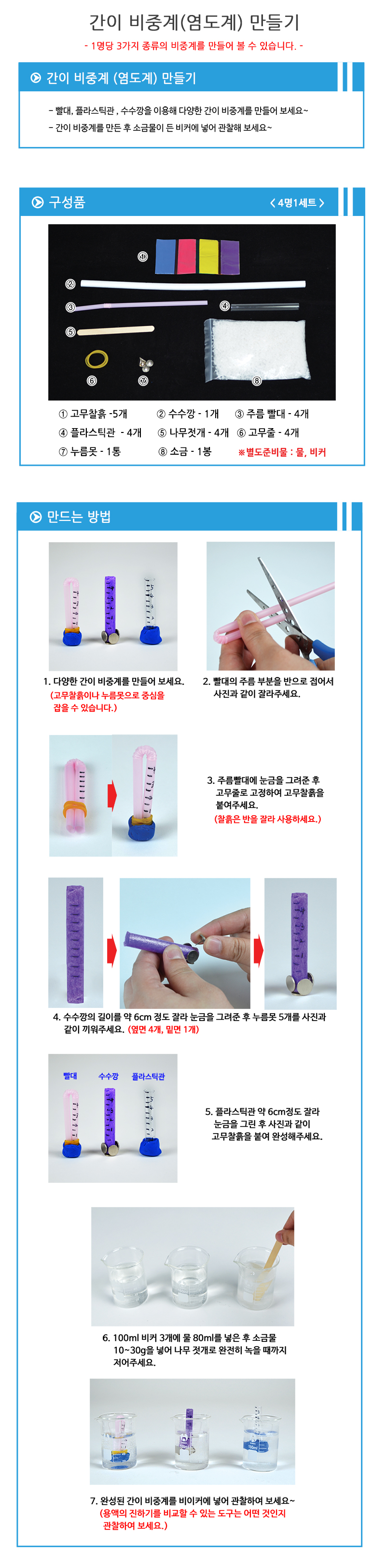 | 품명 및 모델명 | [와니사이언스] 간이 비중계(염도계) 만들기(3종, 4명 세트) |