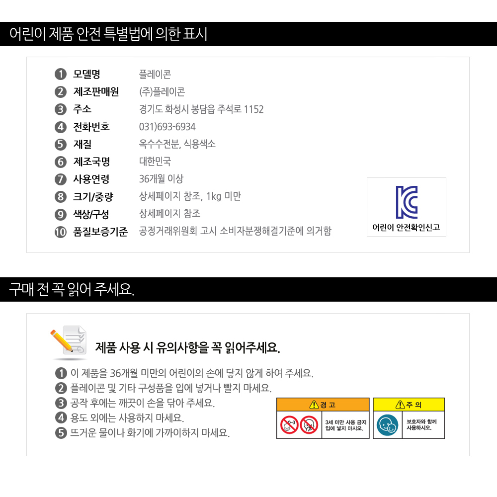 | 제조자,수입품의 경우 수입자를 함께 표기 | (주)플레이콘 |