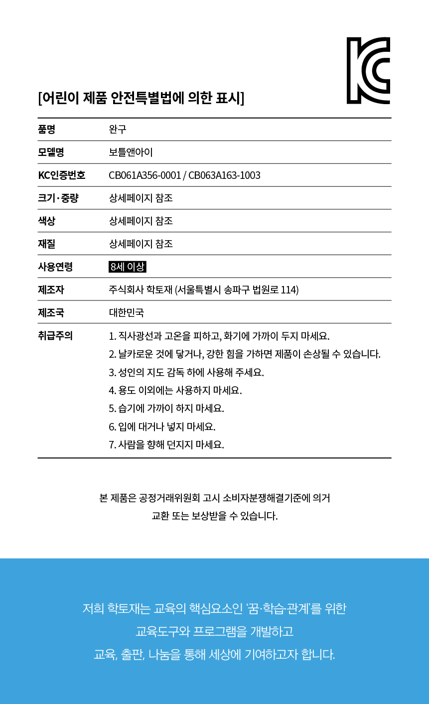 | 제조자,수입품의 경우 수입자를 함께 표기 | 주식회사 학토재 |