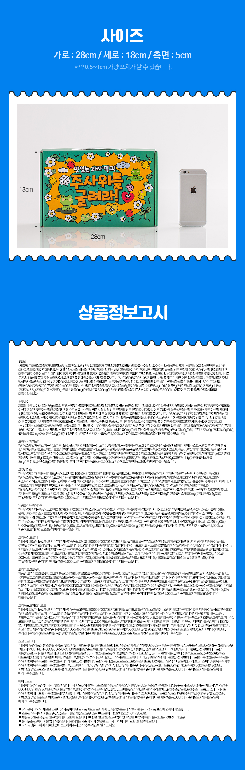 | 제조연월일, 소비기한 또는 품질유지기한 | 재고가 수시로 변동되어 정확한 제조년월일과 유통기한 또는 품질유지기한”의 정보를 제공하기 어려울 수 있습니다. 상세페이지를 참고하시거나, 소비자상담연락처로 문의 시 안내드리겠습니다. |