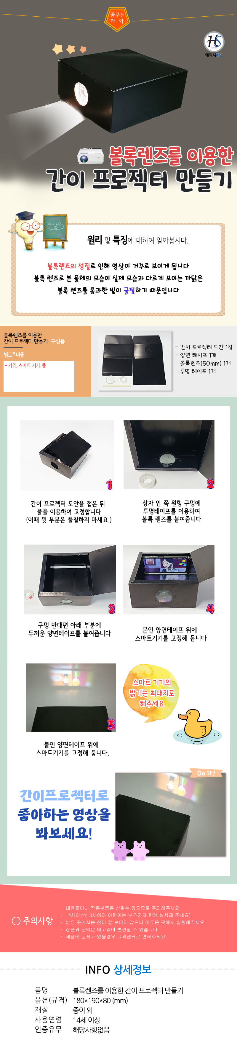 | 품명 및 모델명 | [HS]볼록렌즈를 이용한 간이프로젝터 만들기(1인용) |