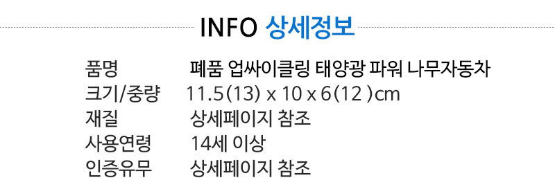 | 품명 및 모델명 | [자람사이언스] 폐품 업싸이클링 태양광 파워 나무자동차 |