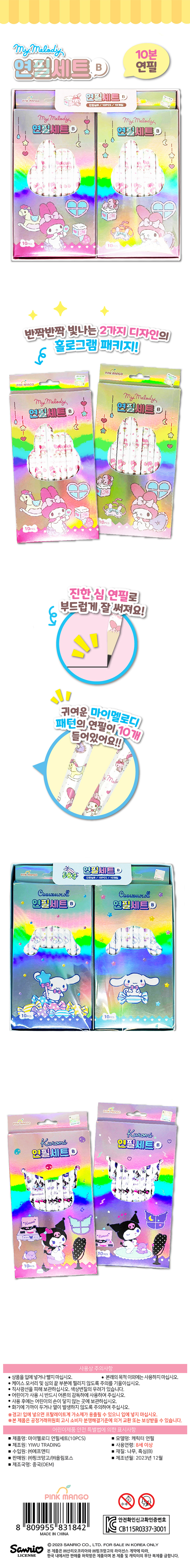 | 품명 및 모델명 | 산리오 연필세트 (10PCS) |