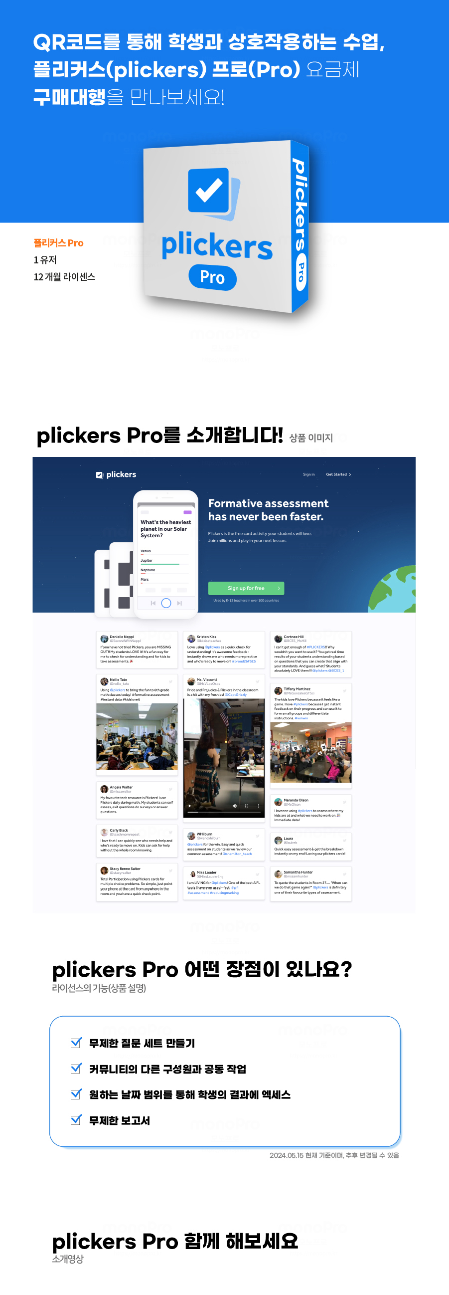 | 제작자 또는 공급자 | PLICKERS / 세상의모든에듀테크 모노프로 |
