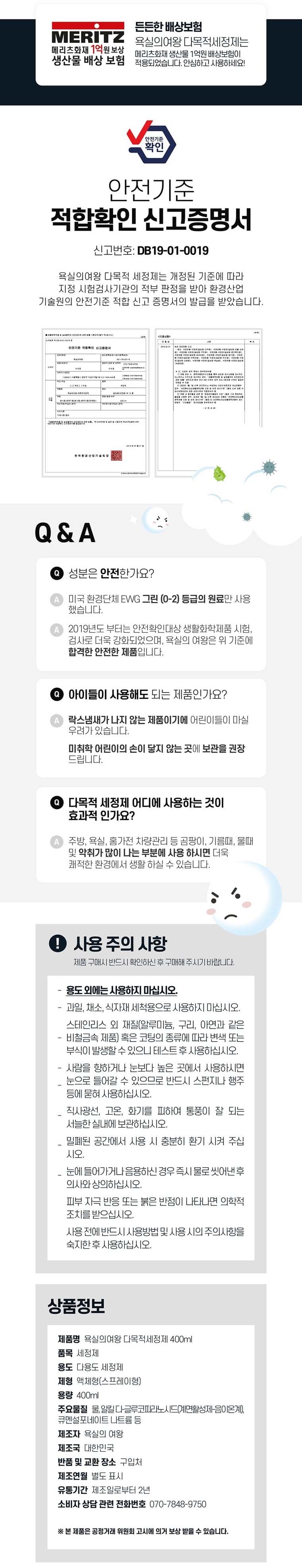 | 품목 및 제품명 | 욕실의여왕 다목적 세정제 |