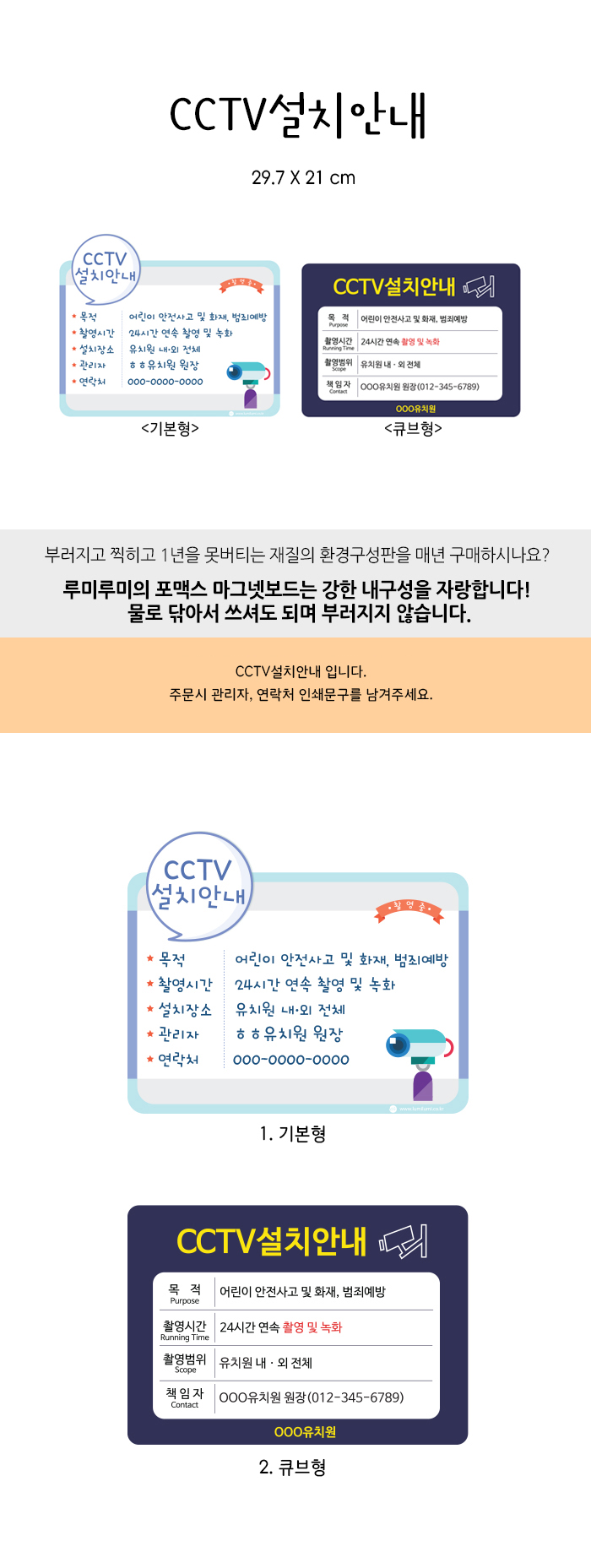 | 품명 및 모델명 | [루미루미] CCTV 설치안내 |