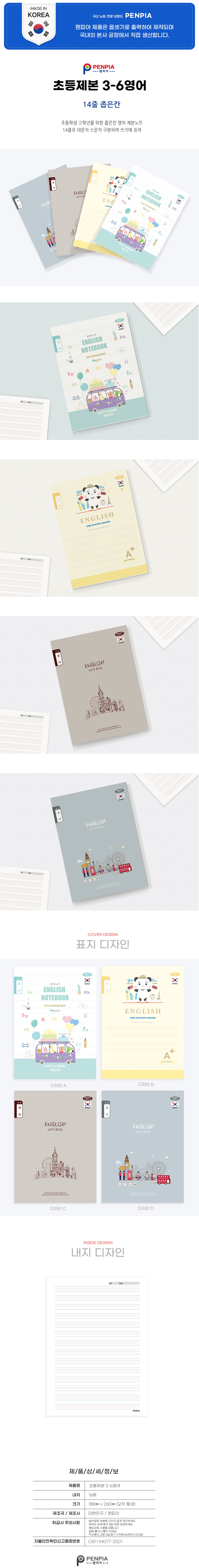 | 품명 및 모델명 | [펜피아] 국산 초등 3-6학년 14줄 좁은칸 제본 영어노트 |