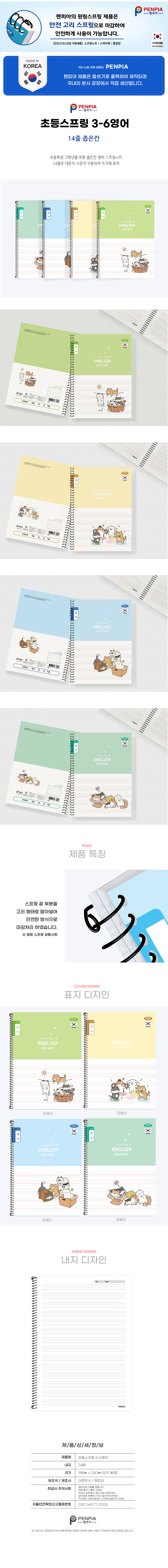 | 품명 및 모델명 | [펜피아] 국산 3-6학년 스프링 좁은칸 14줄 영어노트 |