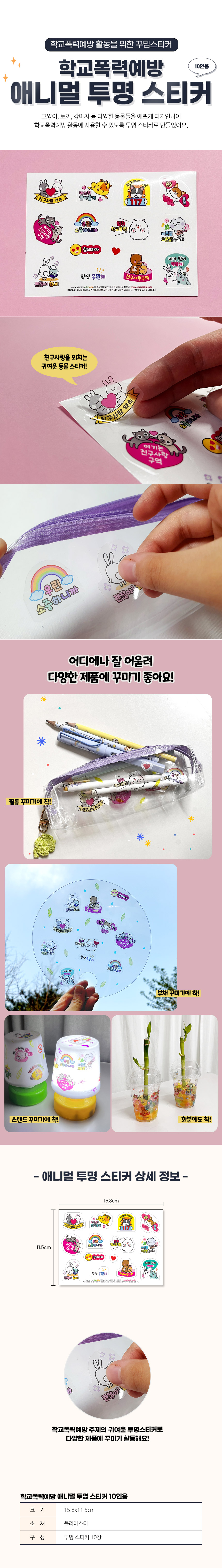 | 품명 및 모델명 | 학교폭력예방 애니멀 투명 스티커 (10인용) |