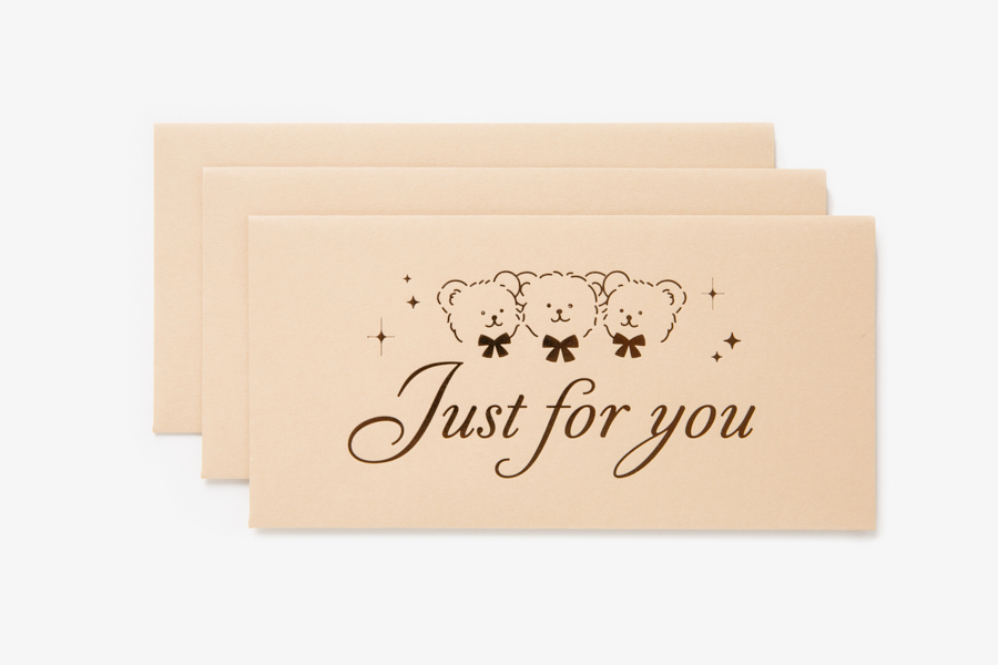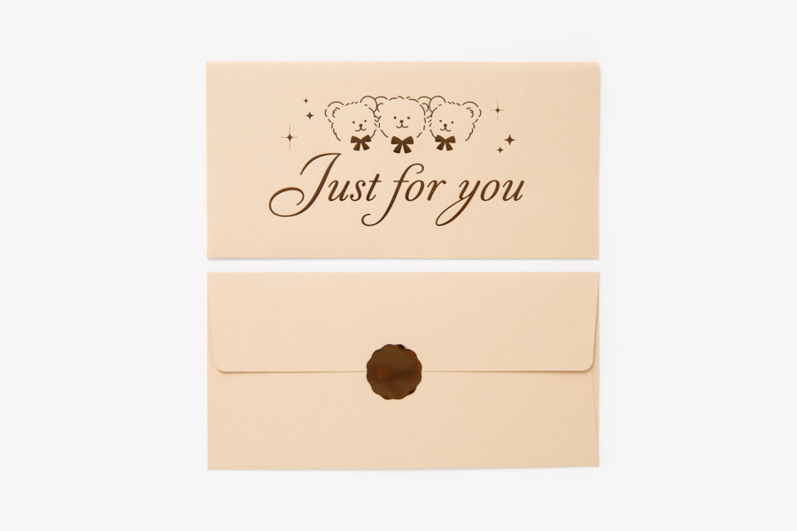 귀여운 곰돌이와 레터링이 들어간 박가공 봉투입니다.