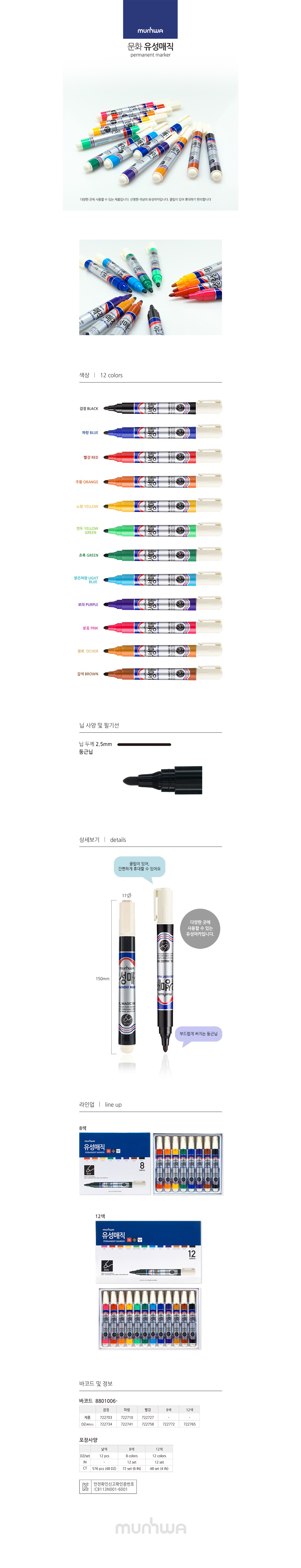 | 품명 및 모델명 | [문화연필] 칼라 유성매직 12색 세트 |
