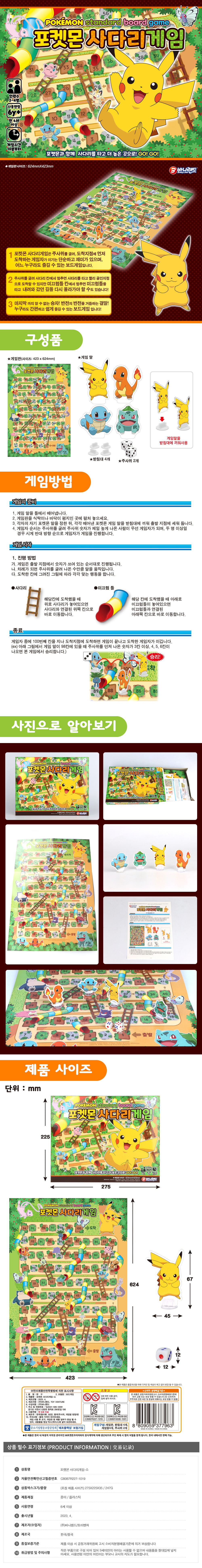 | 품명 및 모델명 | 포켓몬 사다리 보드게임-소 |