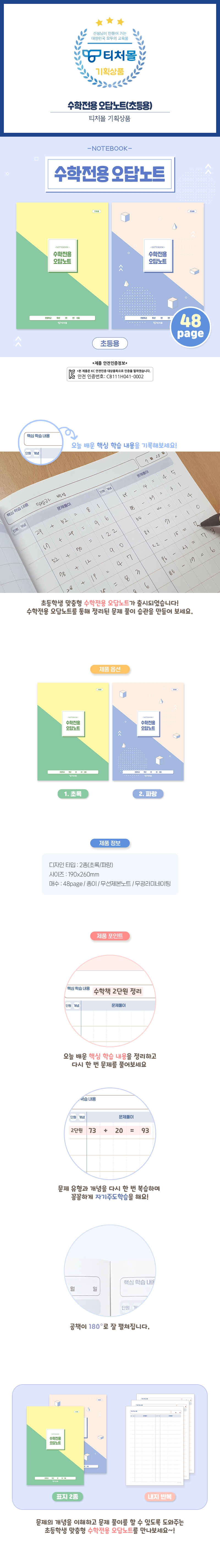 | 품명 및 모델명 | [티처몰] 수학전용 오답노트 |