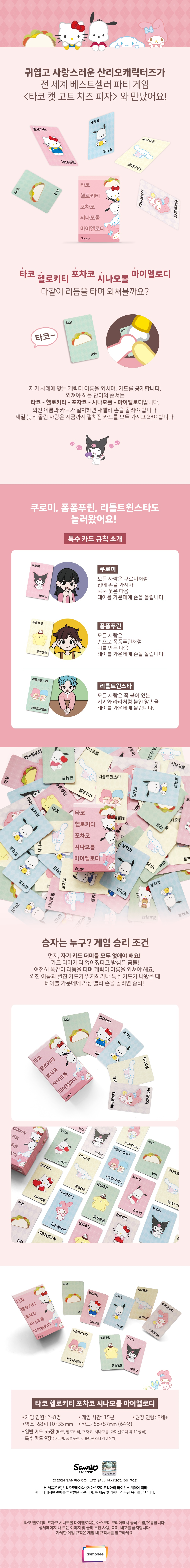 | 품명 및 모델명 | 타코 헬로키티 포차코 시나모롤 마이멜로디 |