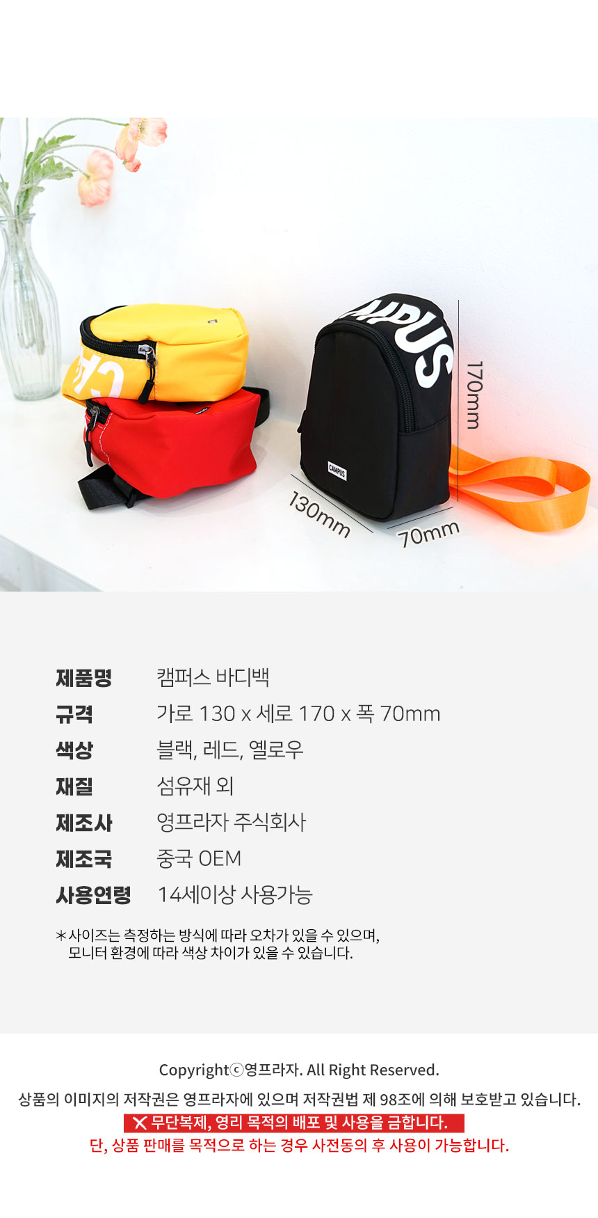 | 품명 및 모델명 | 5000 캠퍼스바디백 |