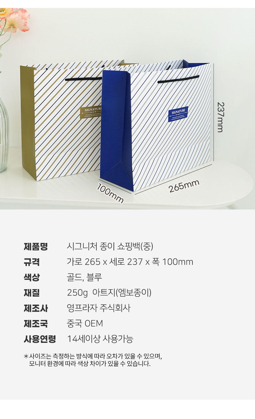 | 품명 및 모델명 | 1800 시그니쳐쇼핑백(중) |