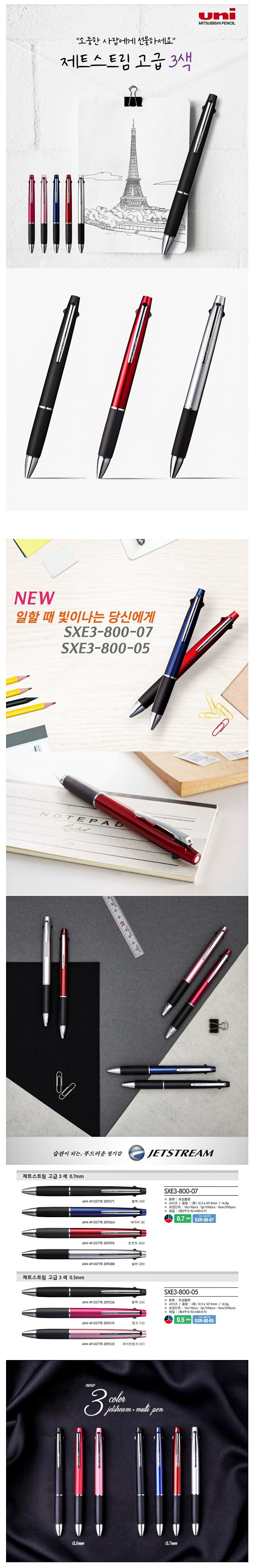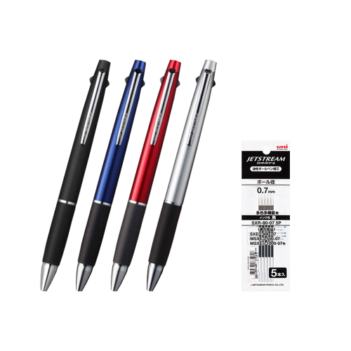 제트스트림 고급 3색 볼펜 1개 (굵기, 바디색상 택1) + 흑 리필심 5개입