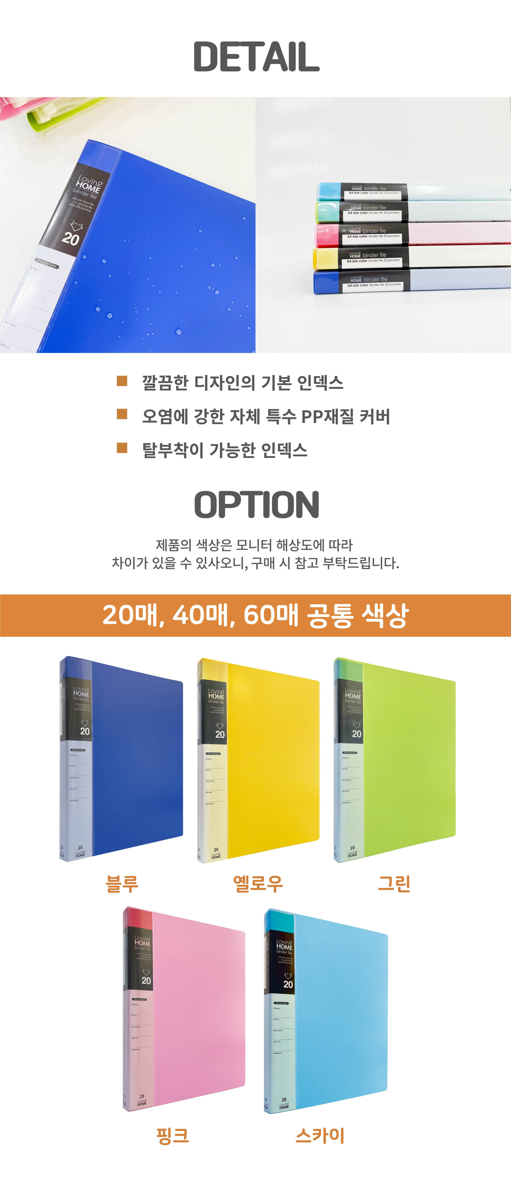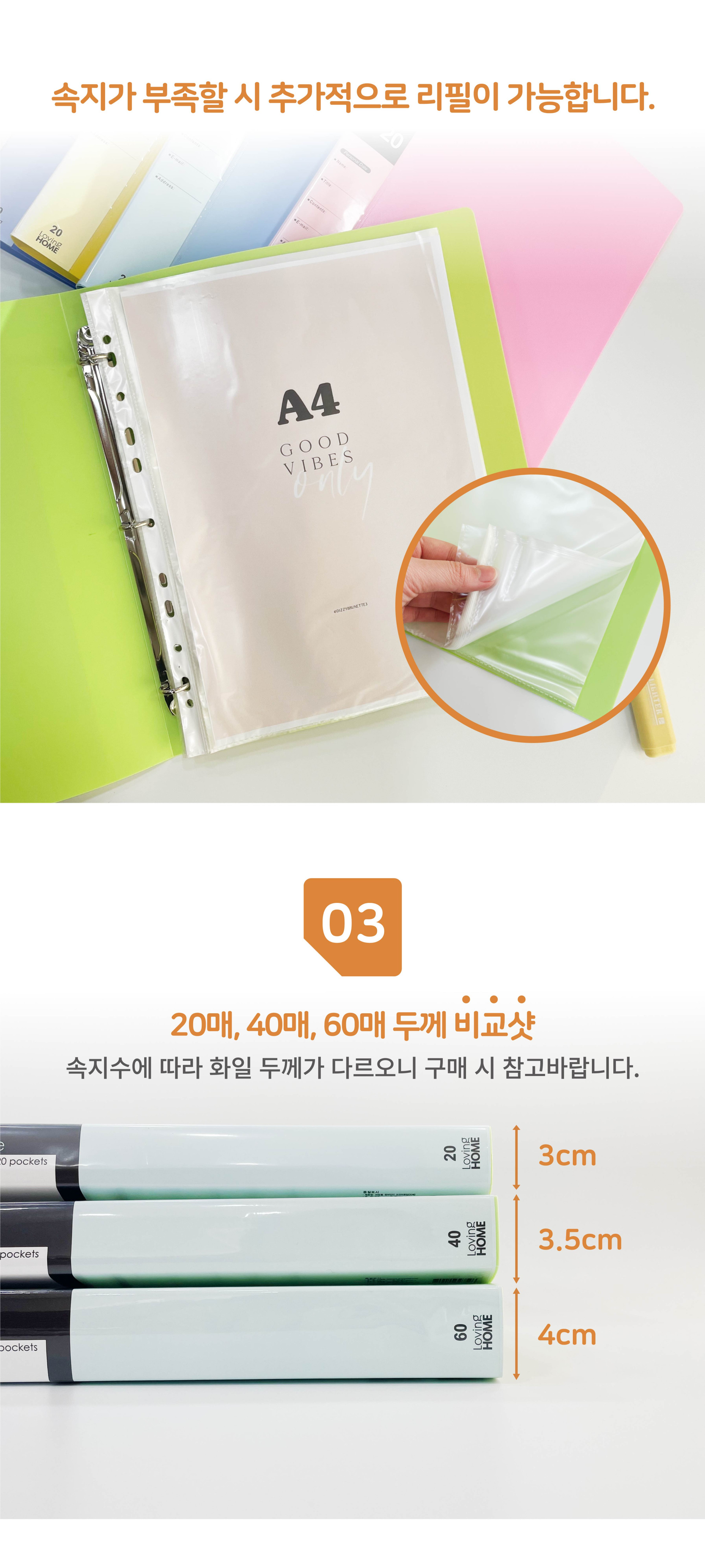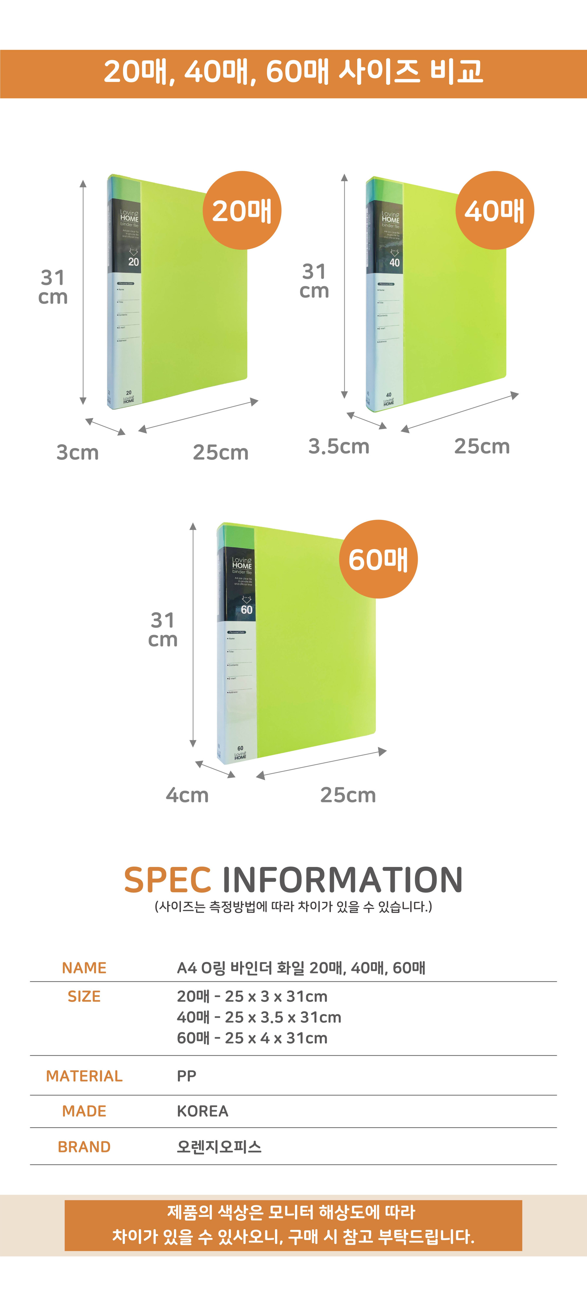 | 품명 및 모델명 | A4 O링 바인더 클리어화일 (20매/40매/60매) |