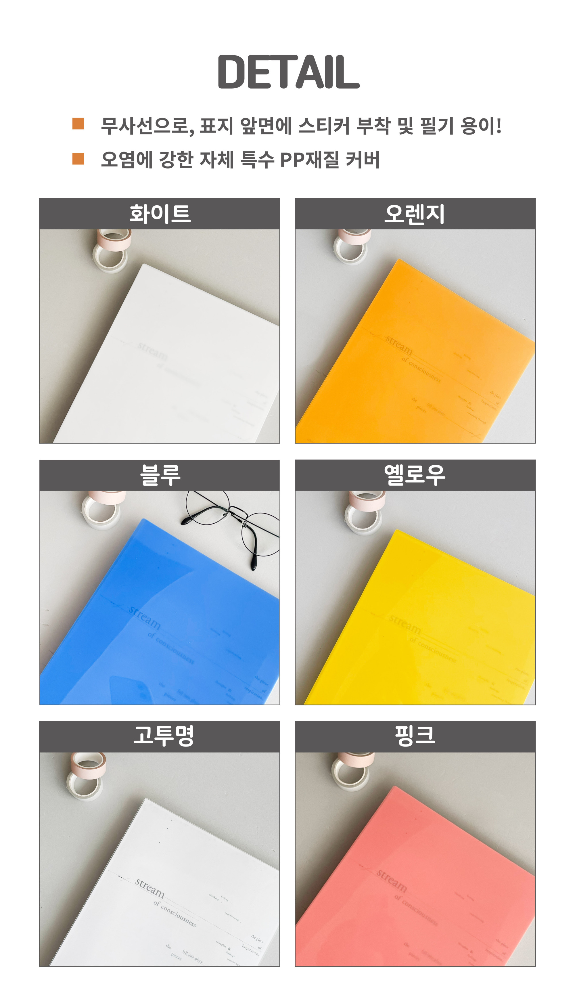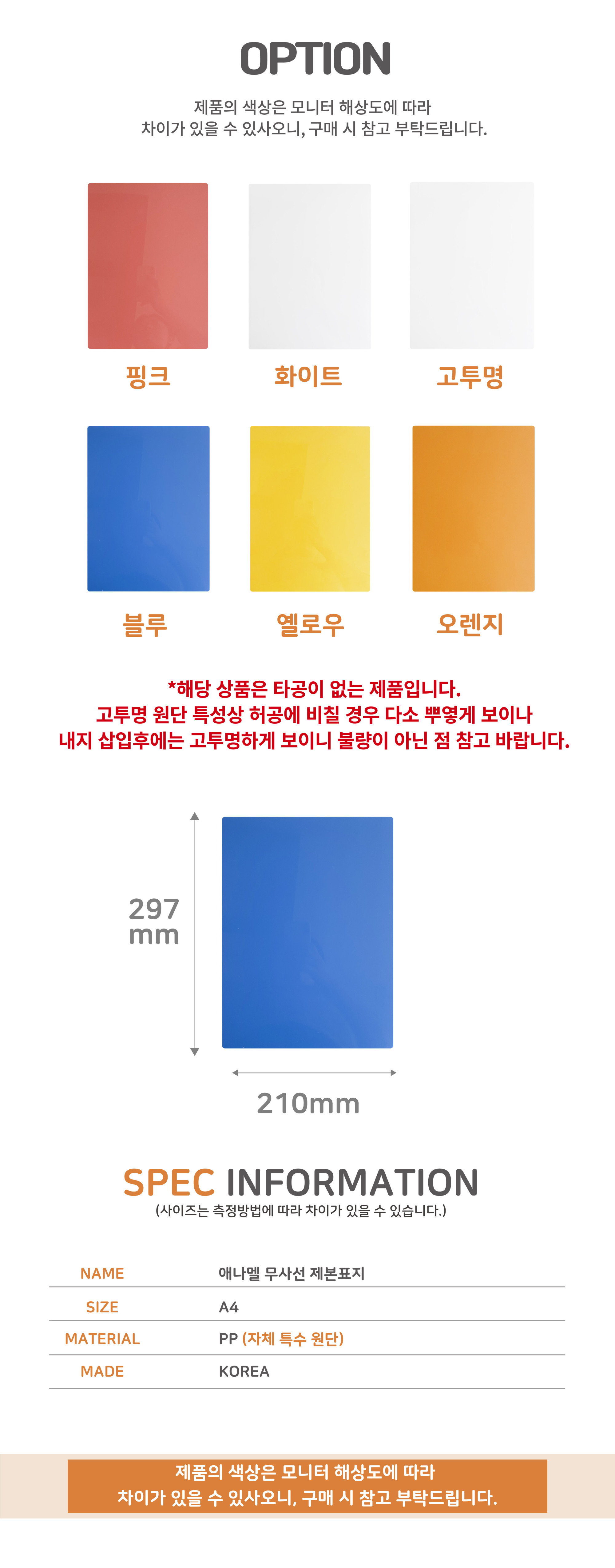 | 색상 | 핑크, 화이트, 고투명, 블루, 옐로우, 오렌지 |