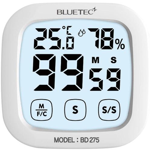 온도/습도는 화면 위쪽에 표시되며, F/C버튼을 3초간 눌러 온도 단위를 설정합니다.