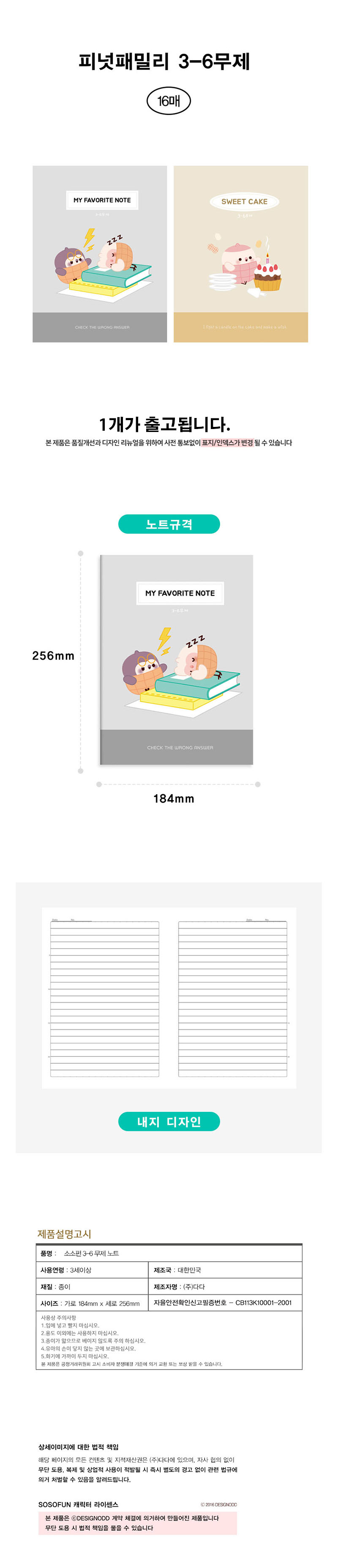 | 품명 및 모델명 | [베어나인] 소소펀 3-6 무제 노트 |