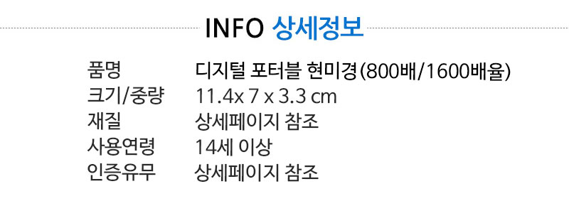 | 품명 및 모델명 | [자람사이언스] 디지털 포터블 현미경 (800배/1600배율) |