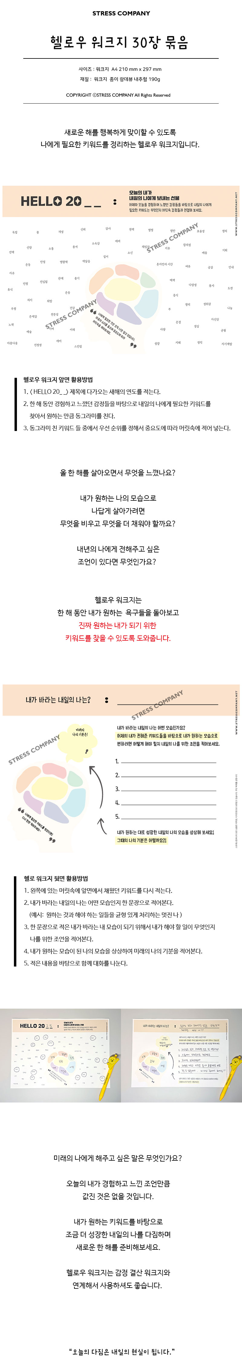 | 품명 및 모델명 | [스트레스컴퍼니] 헬로우 워크지 30장 묶음 |