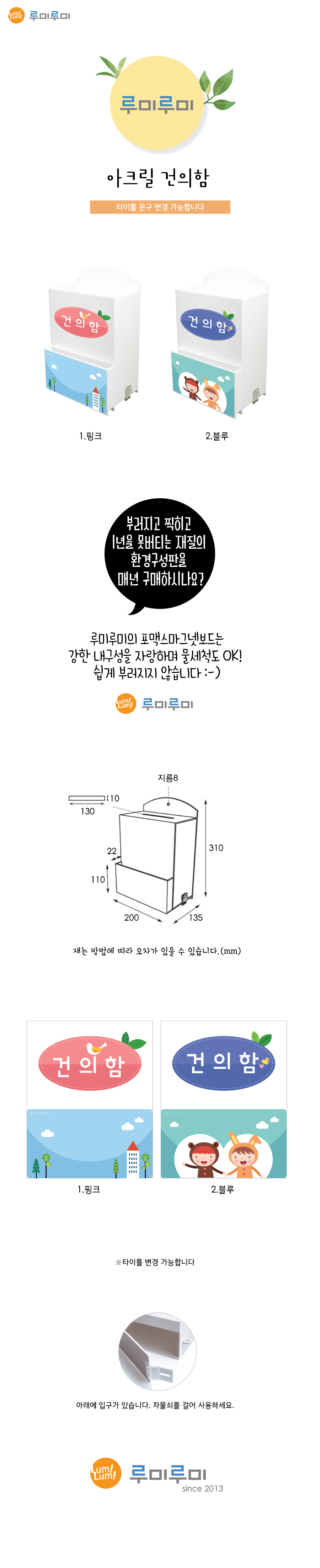 | 품명 및 모델명 | [루미루미]아크릴 건의함 |