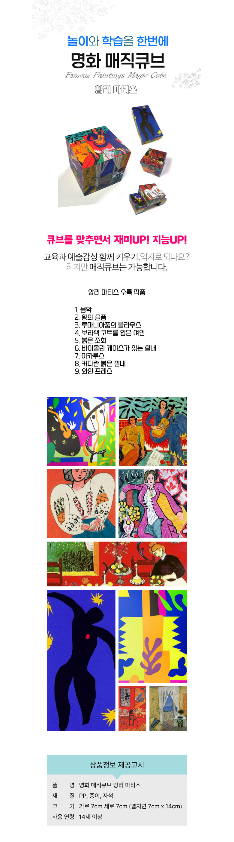 | 품명 및 모델명 | [코스모스에듀] 명화 매직큐브 - 마티스 (작품 9가지) |