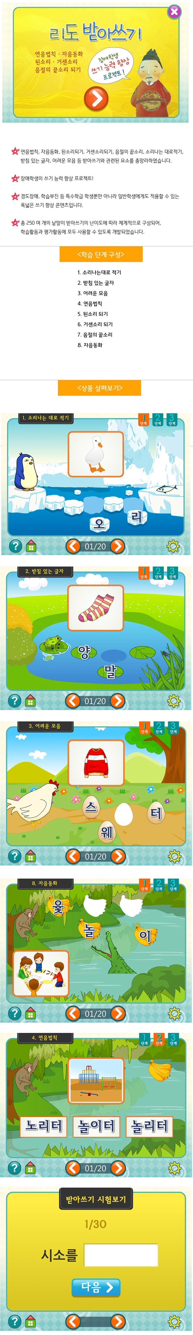 | 품명 및 모델명 | 쓰기능력 향상 프로그램 '리도 받아쓰기' |