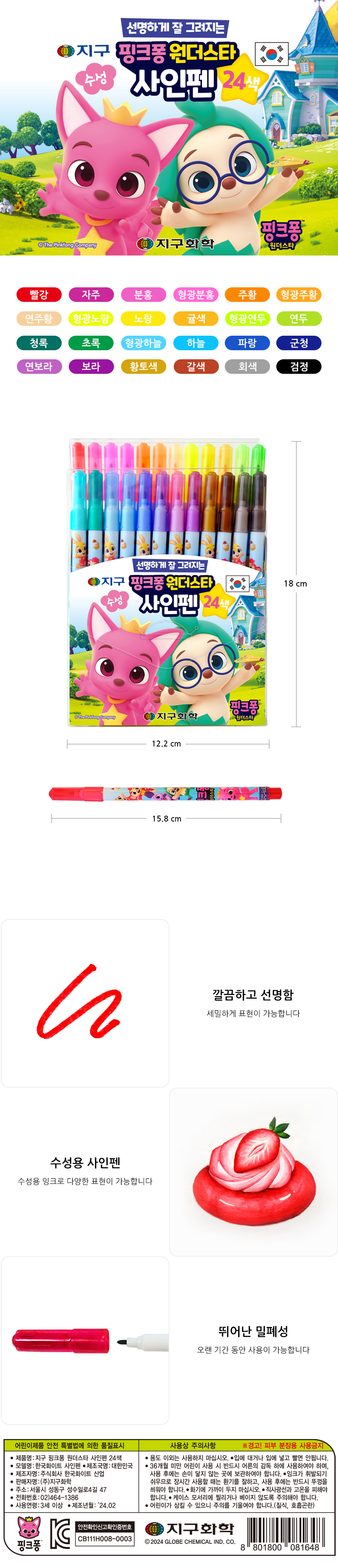 | 품명 및 모델명 | 핑크퐁 원더스타 사인펜 24색 |