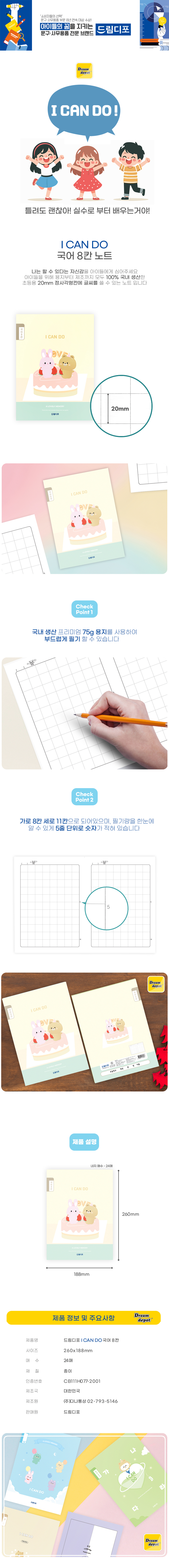 | 품명 및 모델명 | [드림디포] I CAN DO 자신감노트 1-2 국어 8칸 / 3-6 국어 10칸 |